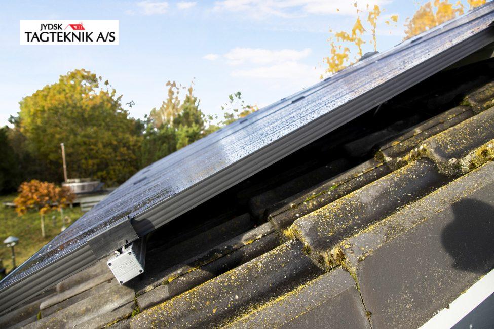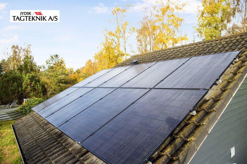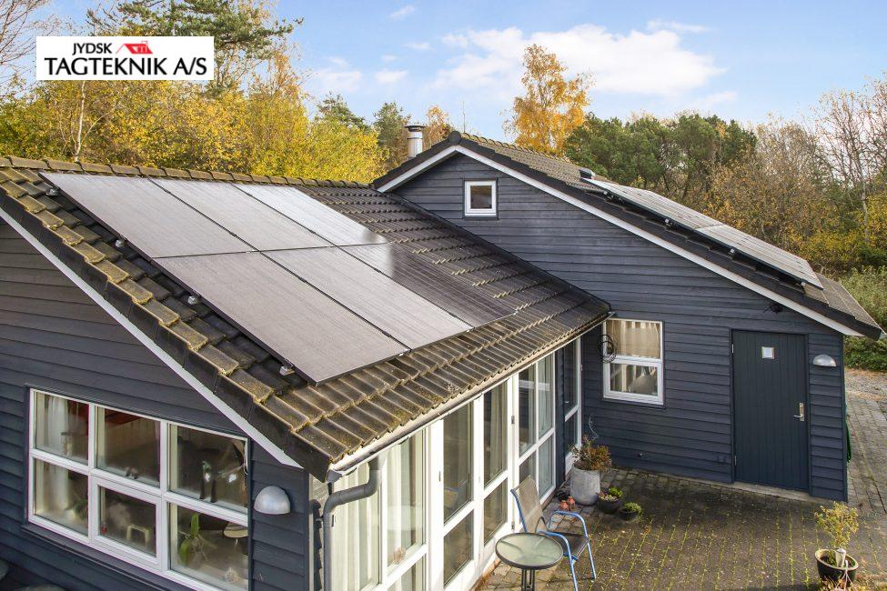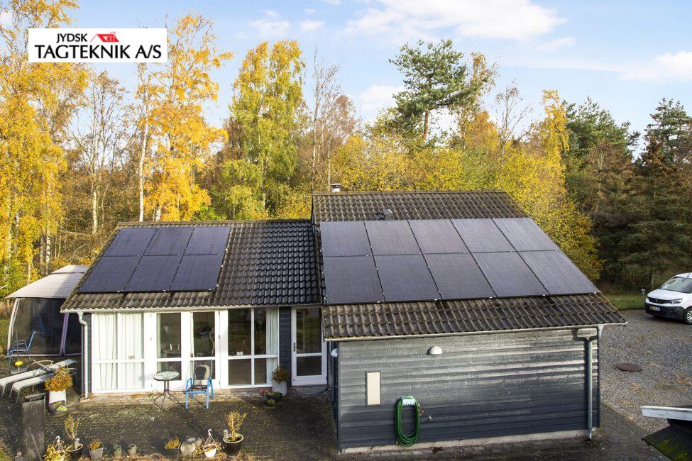 Jydsk Tagteknik A/S har leveret og monteret et 6,4 kWp solcelleanlæg inkl. inverter på sommerhuset i Sæby. Anlægget indeholder: • 16stk Soluxtec Modul Mono XSC Solar paneler . 3,2 mm tempered ARC (Anti-reflective Coating) • 1stk Huawei sun2000-4KTL-M1 hybridInverter (13,5A) inkl. Mpp-trackere • Inkl. Kabler, beslag og montering. • Inkl. Smartphone App, El-installatør og ændringer i el-tavle Kabeltræk. EL-installatør anmeldelse og fysisk tilslutning i tavlen.