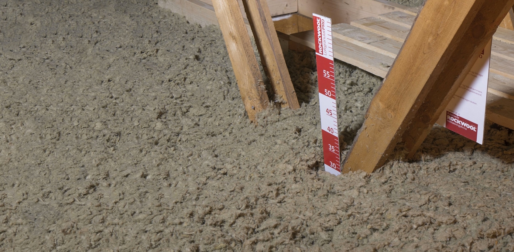Når vi loftisolerer et uudnyttet loftrum, indblæser vi typisk granulat af stenuld (Rockwool) oven på den eksisterende loftisolering ved hjælp af en lang slange. Netop fordi isoleringsmaterialet er granulat, kan det lægge sig i alle hulrum og danne en sammenhængende flade uden kuldebroer. Har du en gangbro, sørger vi for at hæve den, så der er ordentlig ventilation herunder. Der monteres også vindspærrer ved tagfoden, så vinden ikke blæser ind under den nye og gamle loftisolering.