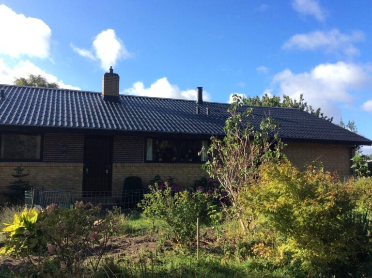 Forside | Villaen i Silkeborg det gamle betontegltag, taget står nu som nyt, husejer valgte af skifte farven på taget fra rødt til sort