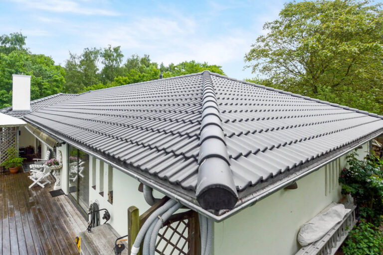 Nyt betontegltag og nye tagrender blev monteret på parcelhus i Jyllinge. Med et tag af betontagsten får du et både flot og holdbart...