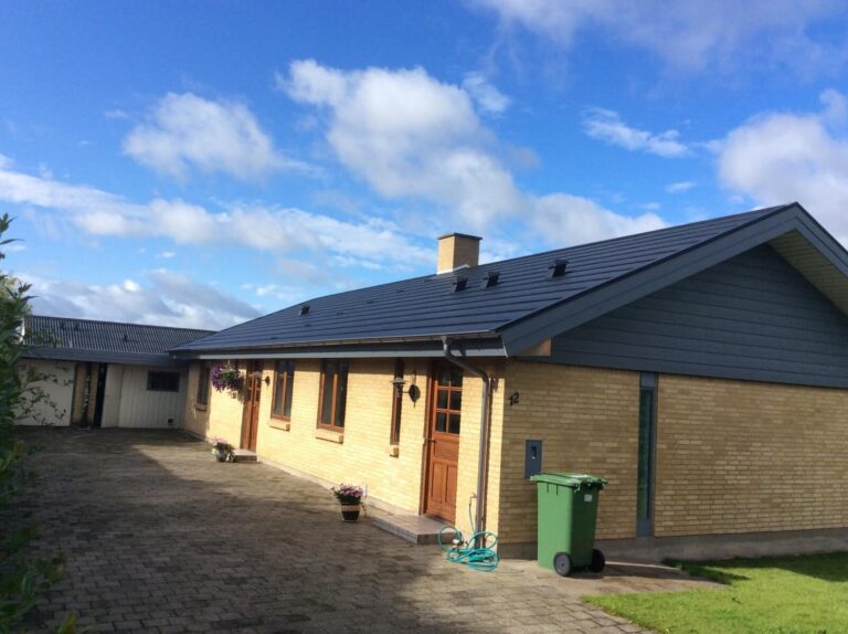 Huset i Frederikssund fik lagt nyt Quadrotag på det eksisterende tagpap, derudover fik de nye tagrender. Tagtype Quadro Årstal 2015 Farve sort
