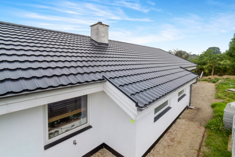 Der blev valgt et Decra Elegance tag på parcelhuset i Værløse. Der blev også monteret nye Icopal metaltagrender samt hvidmalede sternbrædder og udhæng....