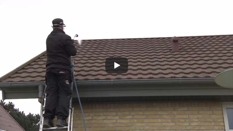 Når vi algebehandler dit tag, behandler vi taget med et miljøgodkendt algebekæmpelsesmiddel, som vi sprøjter på tagfladen med en lanse. Først renser vi dine tagrender for blade og skidt. Nedløbet blokeres for at forhindre at overskudsvæsken løber ud i afløbet. Overskudsvæsken opsamles med sug og tilbageløb til bilens beholder. Efter udført behandling lægger vi en afleveringsseddel i din postkasse.